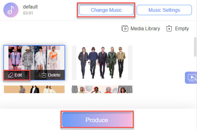 - Third, click the “+” icon to upload the photos you want to include in the video. After that, click the “Edit” button to customize the uploaded files.