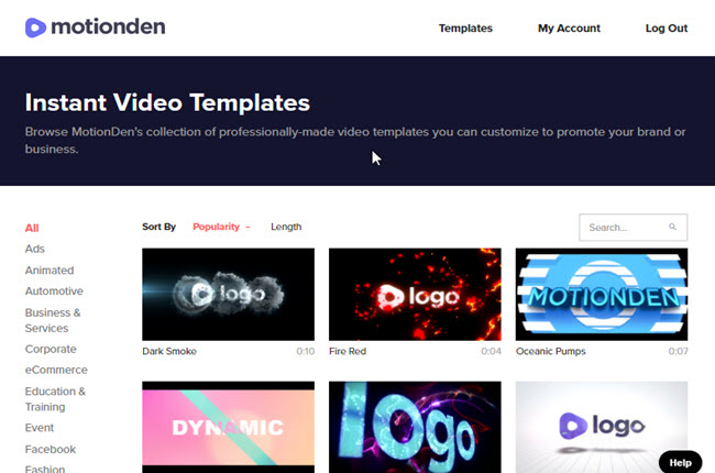 Motionden is the last tool that you can rely on as an alternative to Premiere Pro when it comes to making intro video. This provides video templates that you can use for making intro for different content like vlogs, gaming, and more. Furthermore, this online video title maker enables you to import photos from stock photo sites like Pixabay, Unsplash, and Pexels. Check the following step by step guidelines on how to make an intro video with Motionden.