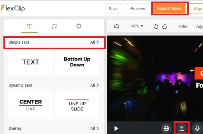 Next, we have another reliable free online video maker named FlexClip. This online tool allows you to edit and produce a video for your social media accounts, including Twitter, Facebook, and Instagram. It has a professional editor that offers different elements and text layout with various animations that you can use to transform raw TikTok videos into something more entertaining. You can also select from its large collection of font styles to customize the added text. Not to mention, this online tool is also capable of adding a voiceover to the video. To get an idea, you can follow the guidelines on how to add words on TikTok videos with FlexClip.