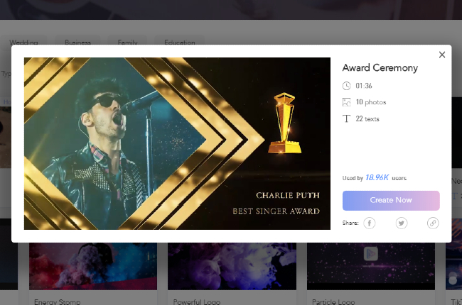 LightMV is a video editing program that works across multiple platforms, including Android, iOS, Windows. Furthermore, this lightweight online tool can be accessed using different web browsers like Google Chrome, Mozilla Firefox, and Safari. Apart from this, it has a user-friendly interface that enables beginners to create a video with ease. Moreover, this tool provides an extensive collection of professional quality video templates. Also, you can customize the presentation by adding photos, videos, text, filters, customized logos, and background music. Check the simple steps below to learn how to create a video presentation with this after effects slideshow template by LightMV.