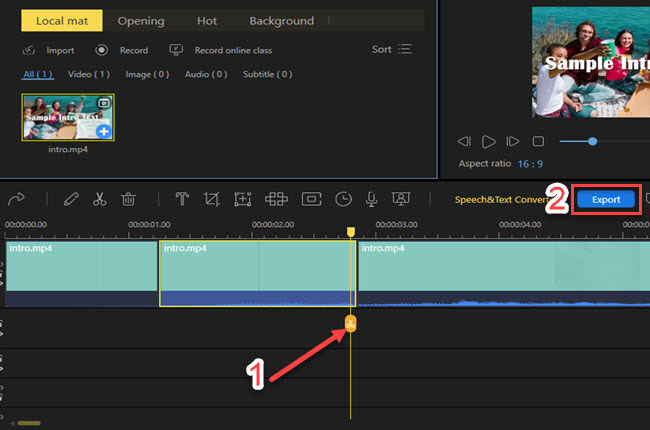• Move the “Playhead” on the starting point of the unwanted clips then click the “Split” button.